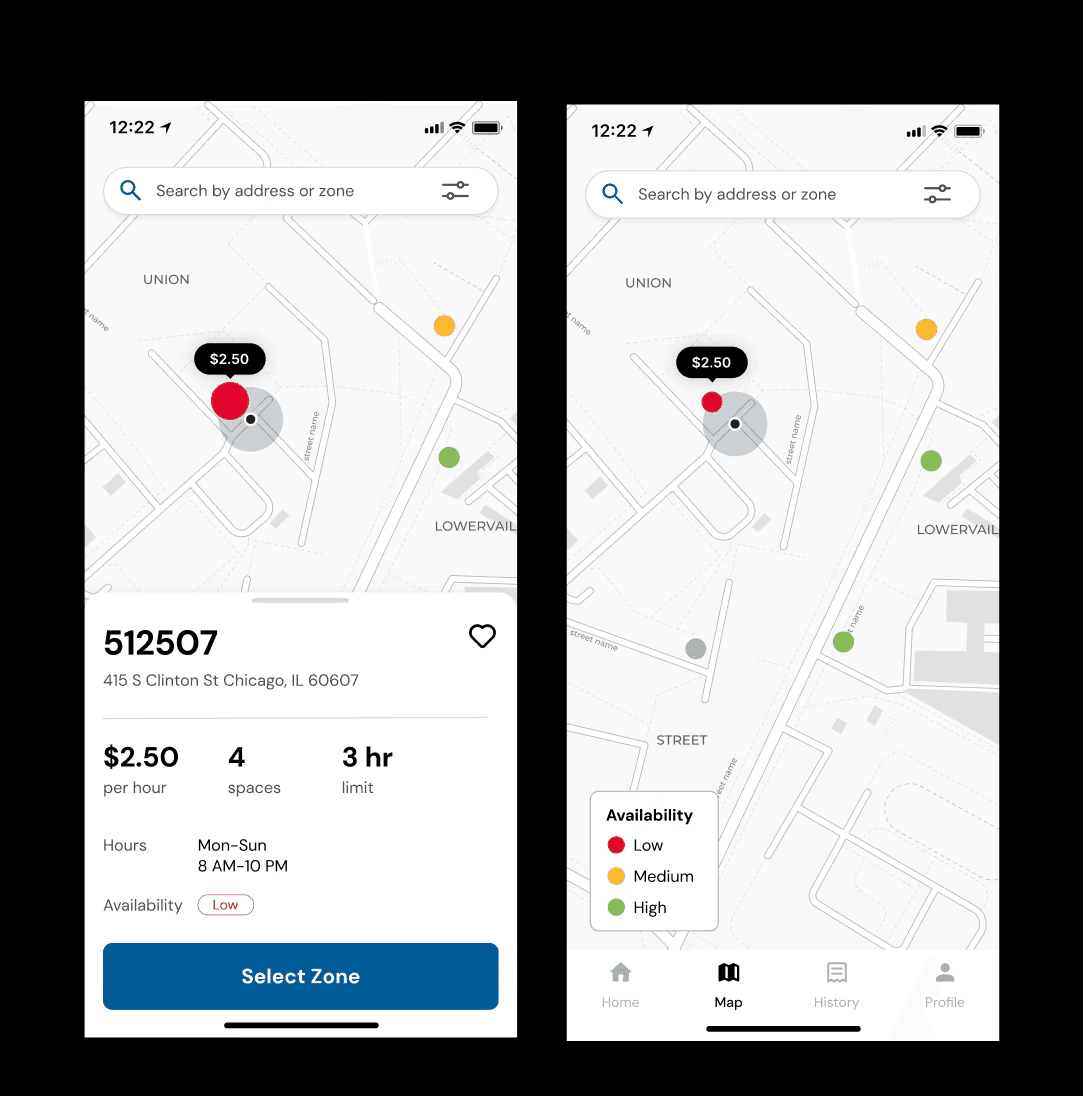Integrate the parking map directly into the Park Chicago app so that it is discoverable and useful but not obtrusive to users who may not use it.